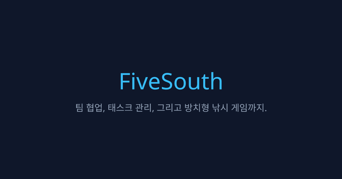 | description | 팀 협업, 태스크 관리, 그리고 방치형 낚시 게임까지. FiveSouth에서 시작하세요. |